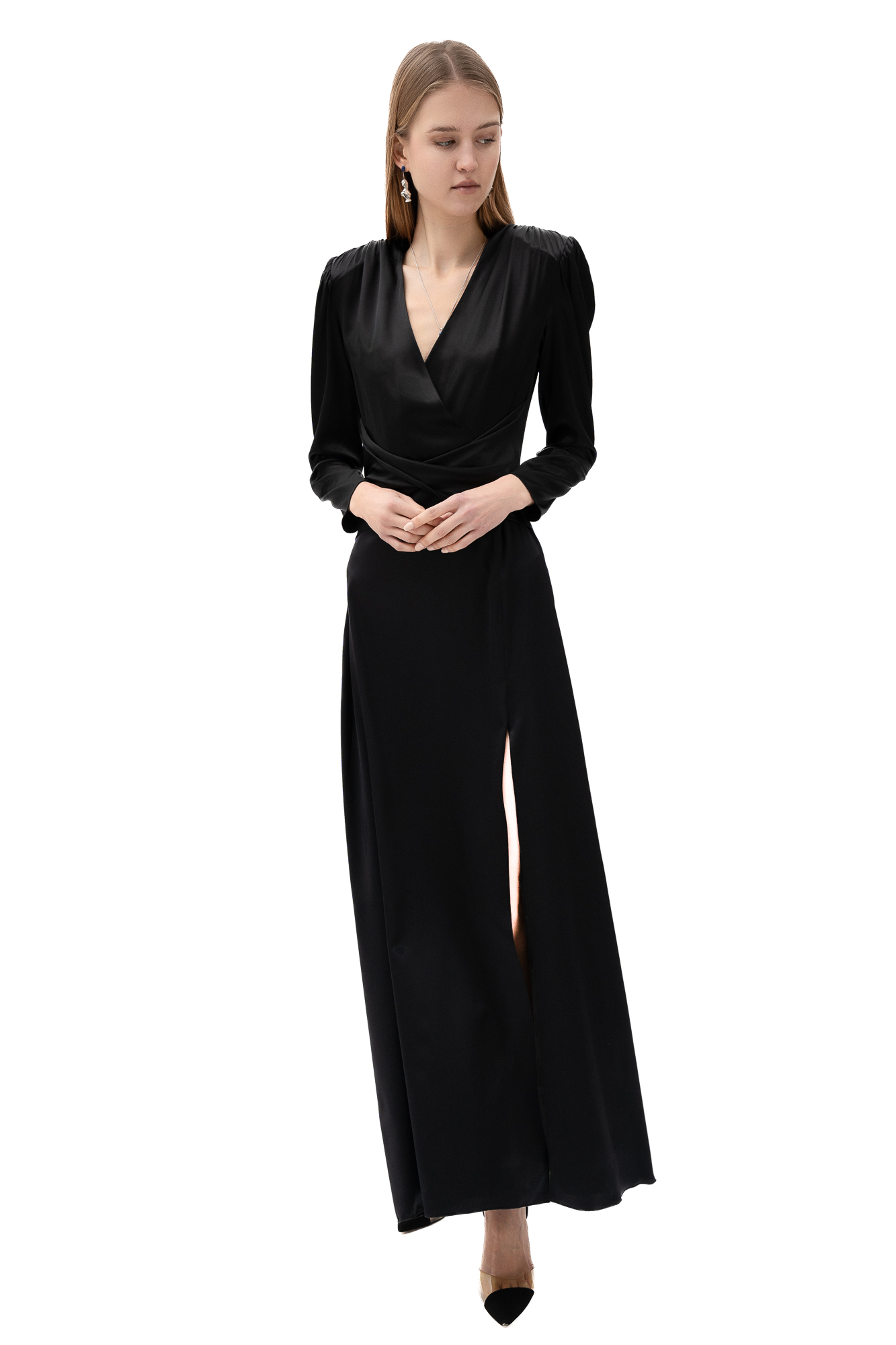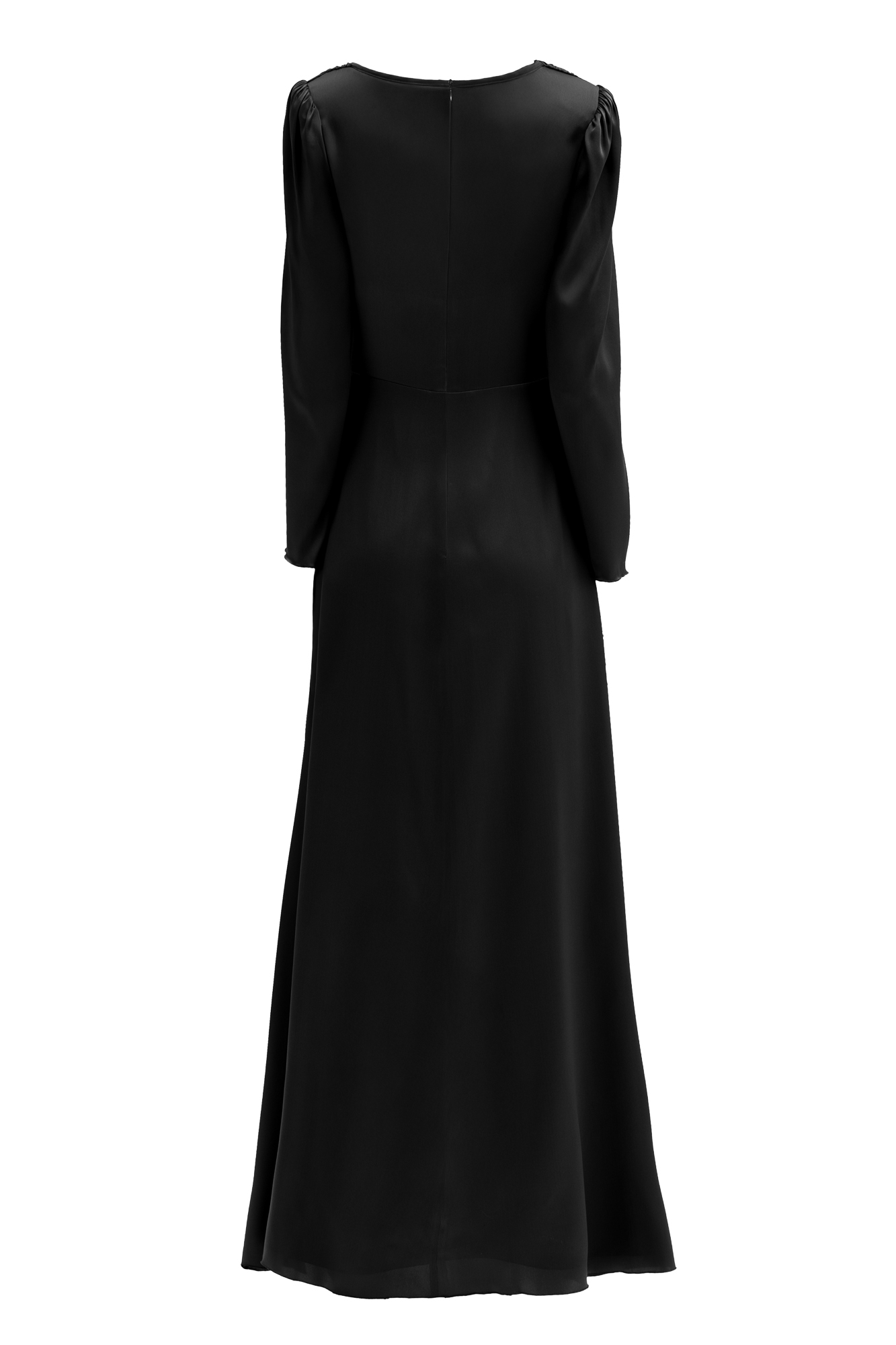 Be the first to review “Silk Cinched Waist Long Dress In Black” Cancel reply