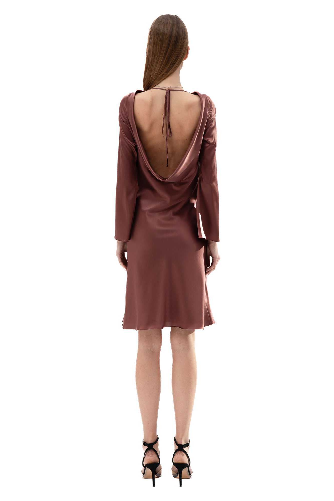 Silk Cowl Neck Short Dress In Rose Brown - Image 4
