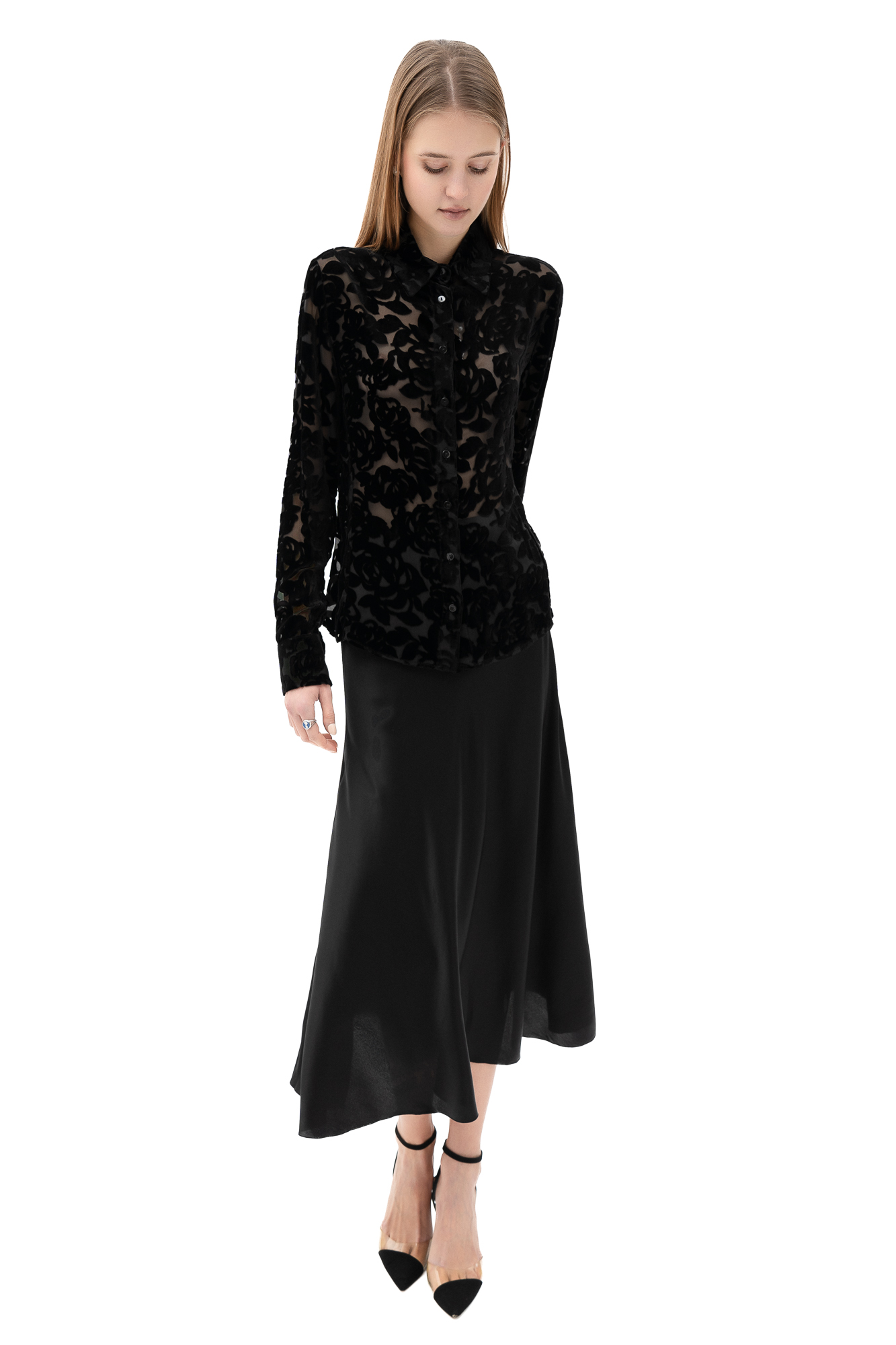 Velvet Burnout Semi Sheer Shirt In Midnight Blue