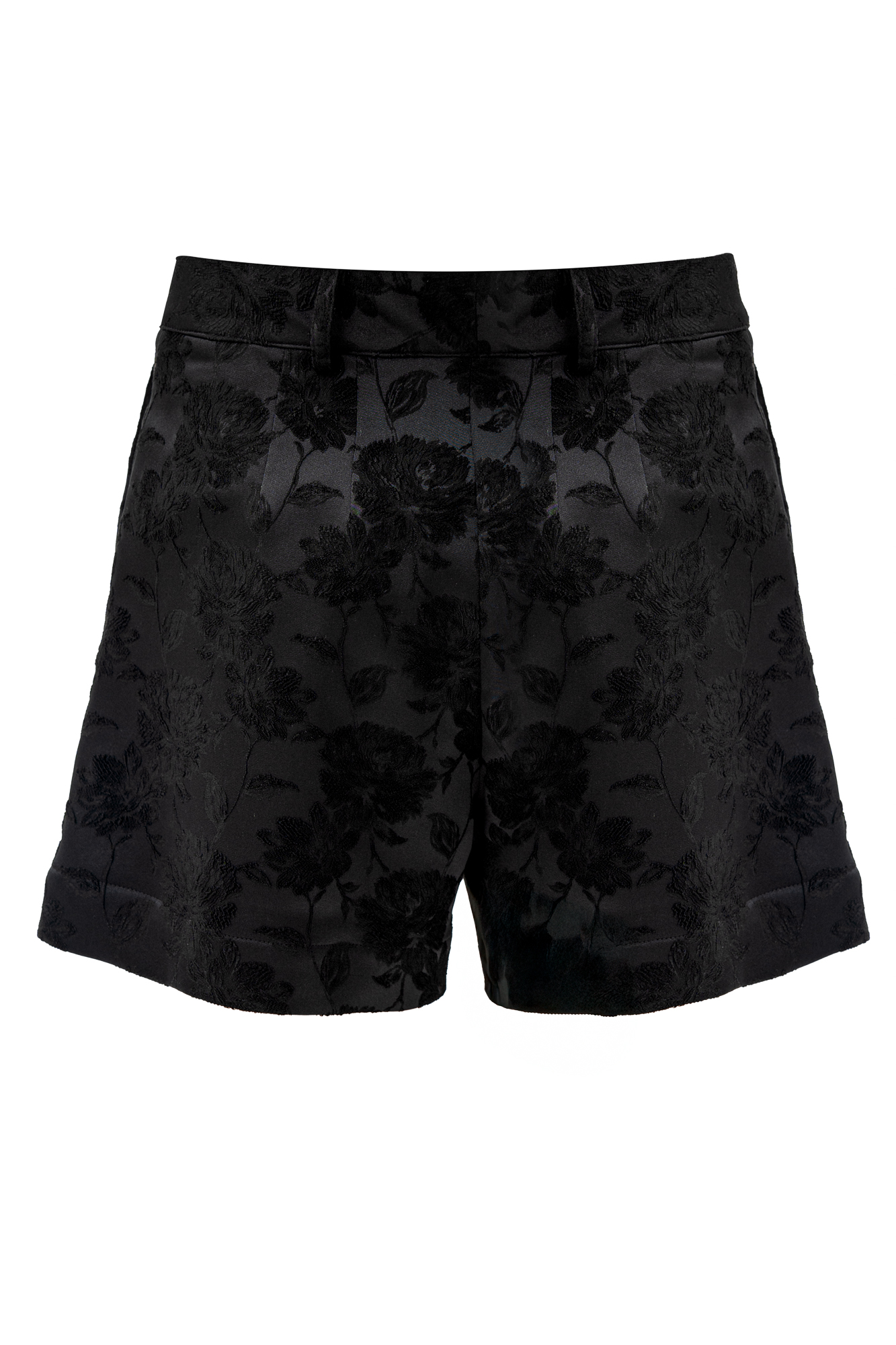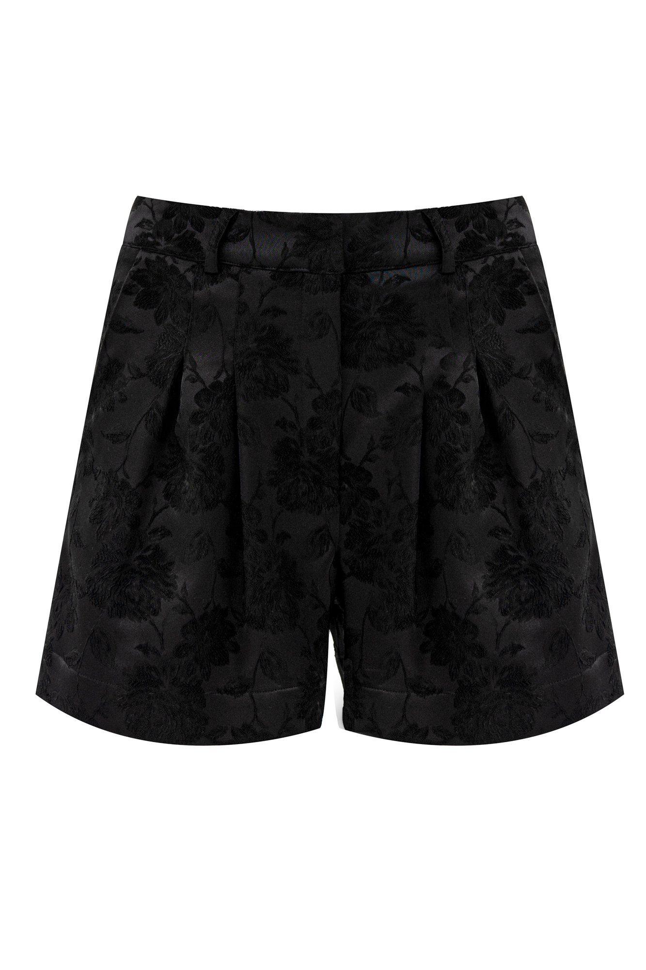 Introduce subtle luxury into your wardrobe with the Silk Jacquard Pleated Shorts in Black. These shorts showcase an elegant texture and tailored pleats, perfect for both formal and casual styling.