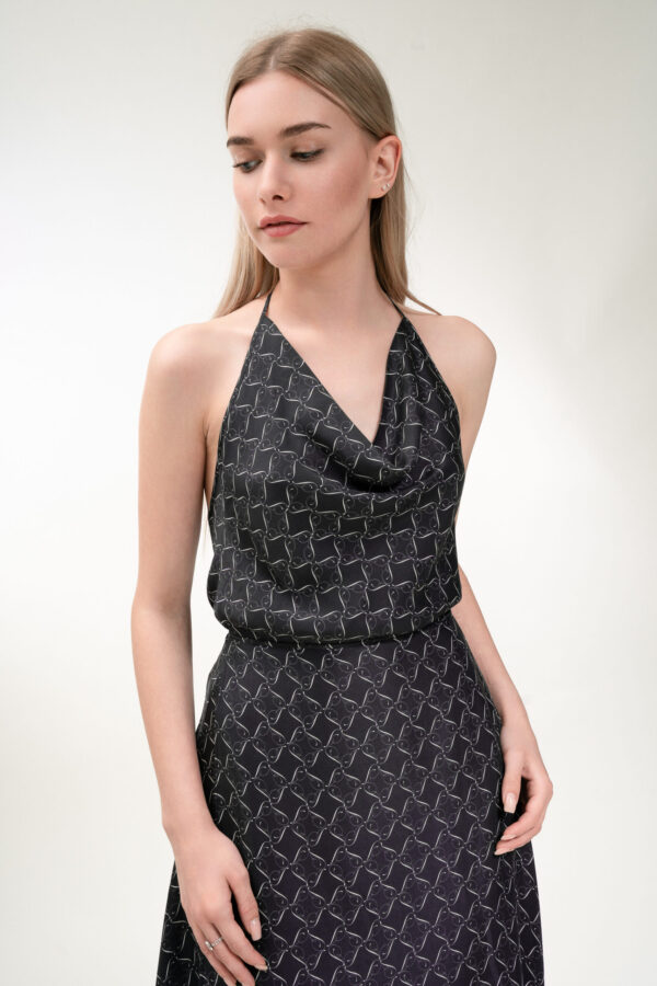 Indulge in maximum comfort with our bias-cut silk top, featuring our iconic ‘Incantevole Milano’ print and flattering cowl neckline for added elegance. This versatile piece is a perfect addition to your wardrobe, offering effortless style and sophistication. Pair it seamlessly with our silk trousers or wrap silk skirt to complete your ensemble.