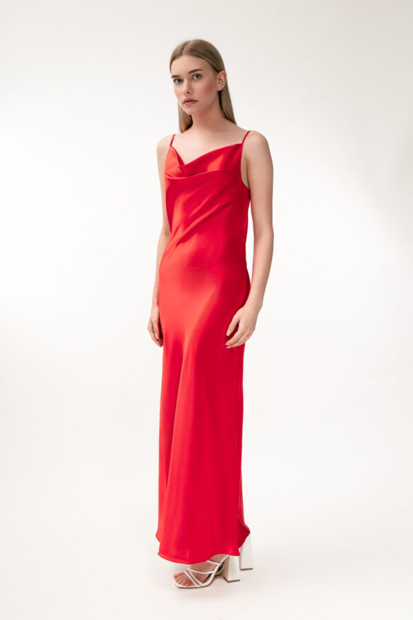 Drape yourself in effortless sophistication with the Silk Open Back Maxi Dress in Red. Crafted from premium silk, this dress captivates with its lustrous sheen and fluid silhouette, exuding a perfect balance of bold sophistication and effortless grace. Designed to turn heads, the sultry open back is paired with a delicately draped cowl neckline, making it an impeccable choice for special evenings